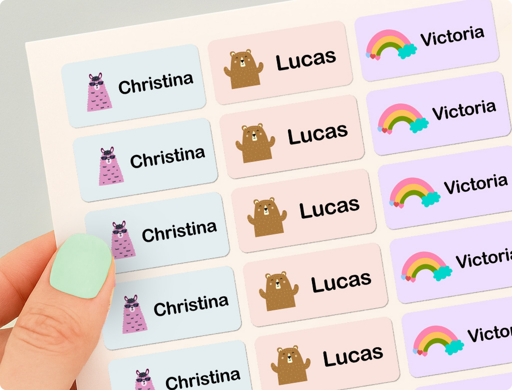 Upptäck våra mångsidiga, hållbara , strykfria och självhäftande namnlappar – perfekta för att märka kläder, skor, sportutrustning, matlådor, leksaker och mycket mer. Oavsett om det gäller barn på förskolan, vuxna på jobbet eller äldre på boenden – våra klisteretiketter håller ordning på vardagen.